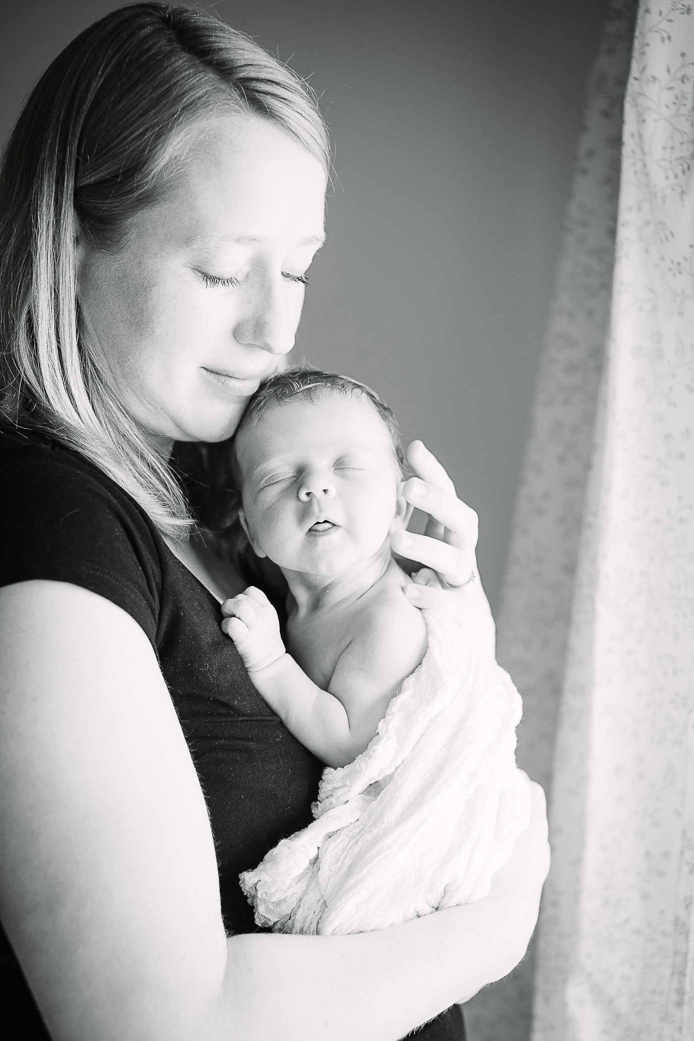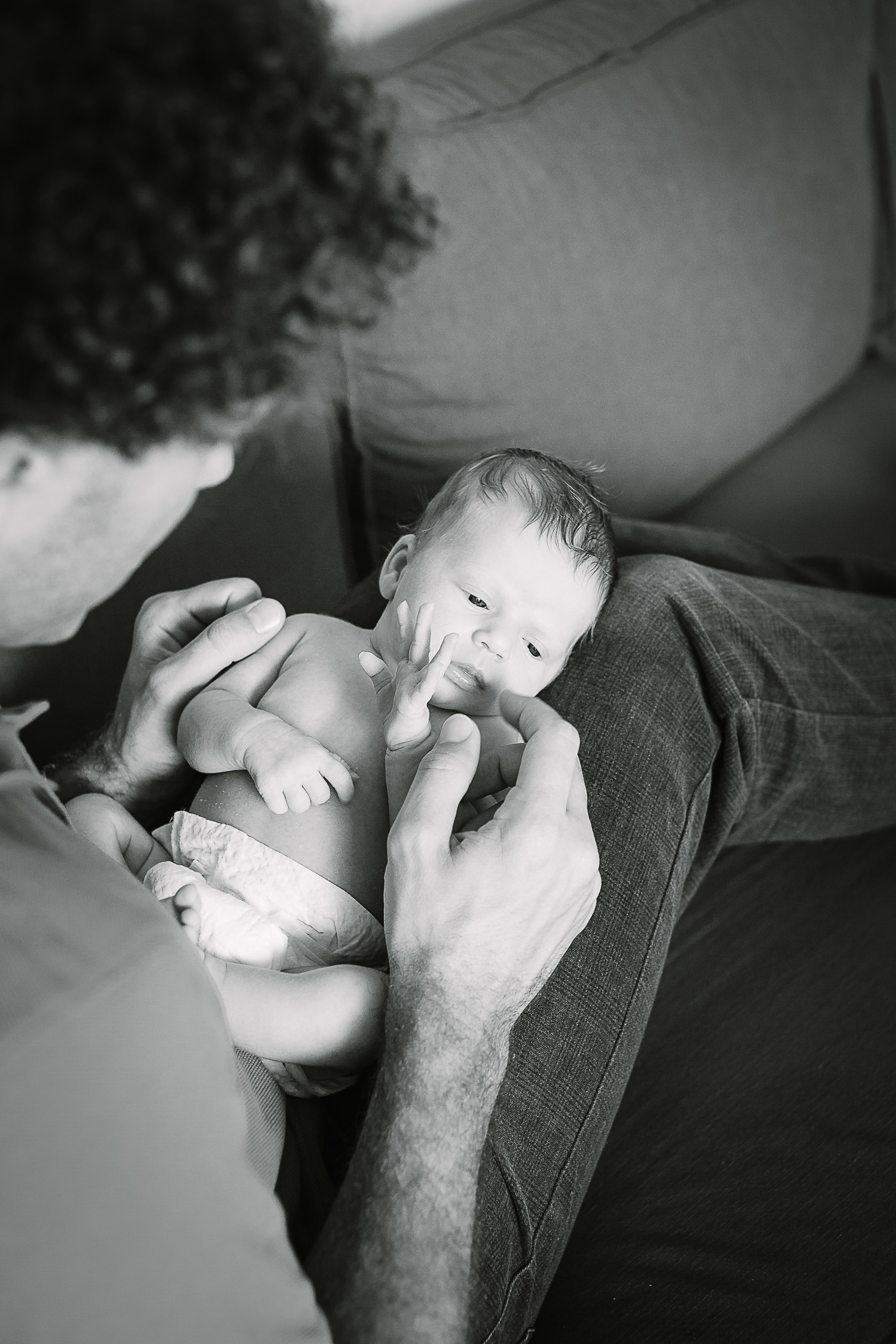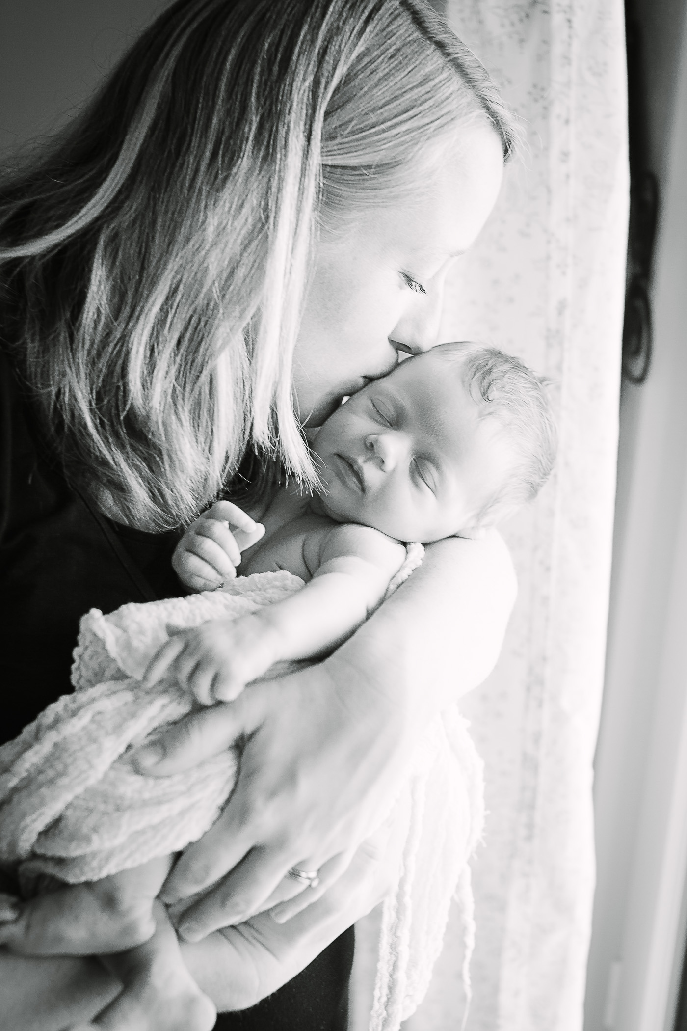 We started by capturing those quiet, intimate moments between mother and baby. Snuggled in close, wrapped in a beautifully knitted blanket made by the grandmother, the baby drifted off to sleep as Mum kissed their tiny forehead. These kinds of details—family heirlooms, handmade keepsakes, familiar surroundings—bring warmth and authenticity to the images.